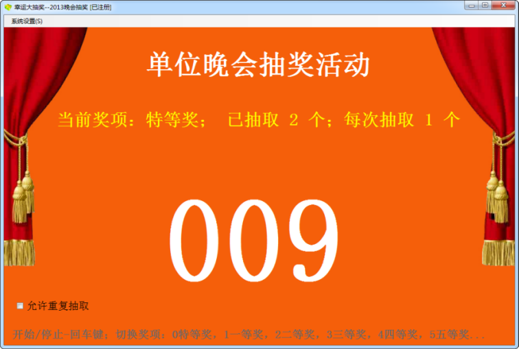 現(xiàn)在很多企業(yè)或單位在年終或企業(yè)周年紀(jì)念時(shí)都會(huì)舉行文藝慶祝晚會(huì),同時(shí)有抽獎(jiǎng)節(jié)目,以鼓舞員工士氣,增強(qiáng)企業(yè)文化分圍,提高企業(yè)凝聚力。在晚會(huì)現(xiàn)場(chǎng)用投影儀投射抽獎(jiǎng)界面,簡(jiǎn)單的幾個(gè)操作就能實(shí)現(xiàn)軟件實(shí)時(shí)抽獎(jiǎng),彰顯公平、公正,能將晚會(huì)氣氛推至最高潮。