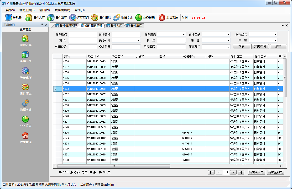 備件倉(cāng)庫(kù)管理系統(tǒng),是一款界面友好,方便易用的倉(cāng)庫(kù)管理系統(tǒng),集備件信息管理、備件入庫(kù)、備件出庫(kù)、庫(kù)存查詢、庫(kù)房管理、業(yè)務(wù)報(bào)表、權(quán)限管理、數(shù)據(jù)字典管理、備件及庫(kù)存導(dǎo)入等功能于一體。