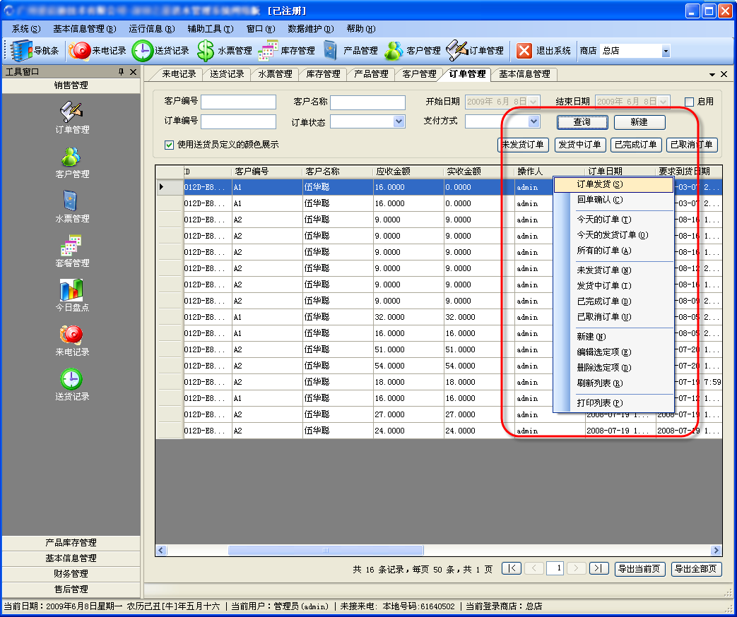 軟件主要功能有來(lái)電顯示及電話錄音、客戶管理、訂單管理、水票管理、權(quán)限管理、送水工管理、庫(kù)存管理、財(cái)務(wù)管理、售后管理、報(bào)表打印等眾多實(shí)用有效的的功能。