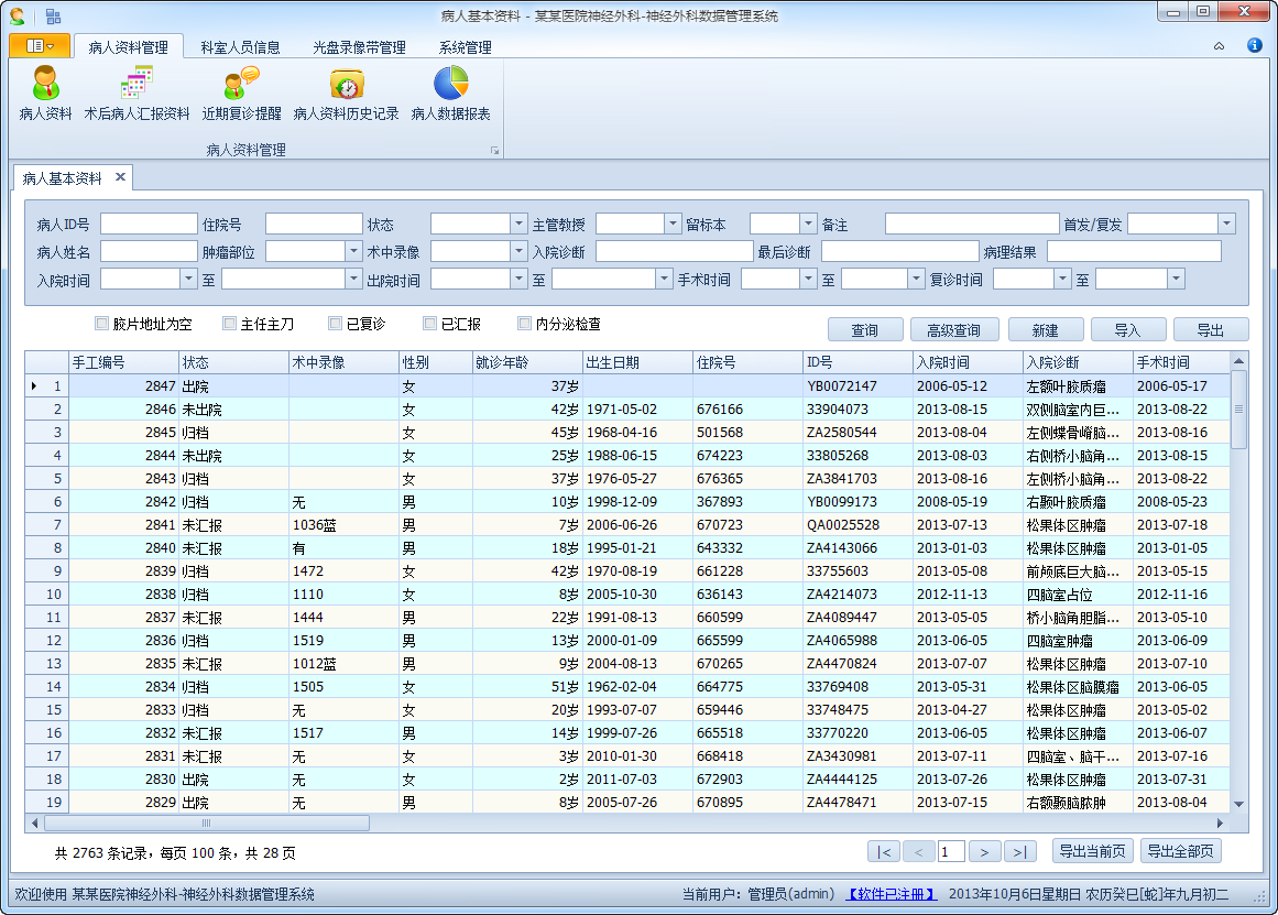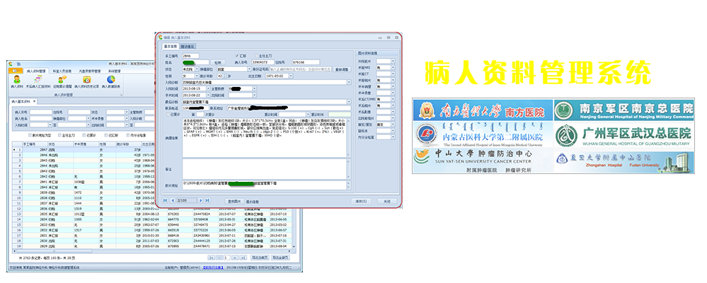 我們開(kāi)發(fā)了一系列的病人資料管理系統(tǒng),包括《神經(jīng)外科病人資料管理系統(tǒng)》、《脊柱外科病人資料管理系統(tǒng)》、《腫瘤外科病人資料管理系統(tǒng)》等軟件,豐富的開(kāi)發(fā)經(jīng)驗(yàn)和行業(yè)經(jīng)驗(yàn)?zāi)転槟_(kāi)啟病人資料數(shù)字化管理的金鑰匙,提高日常的管理效率。